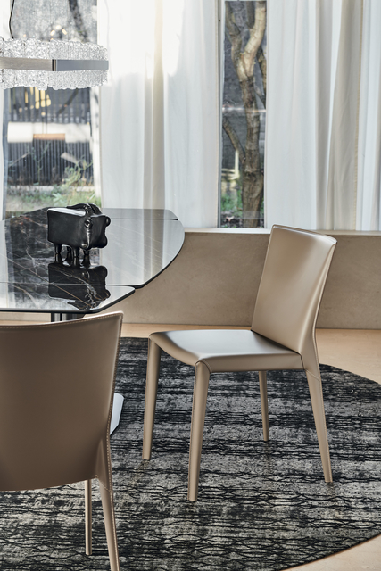 The modern chair Beverly stems from the creativity of Paolo Cattelan and combines an elegant and refined personality with the comfort that distinguishes a designer chair of excellent quality. This leather chair, designed to furnish any room in the house, is available in a wide range of fine leather upholstery. The quality of the Italian manufacturing is appreciable in the visible stitching, matching the upholstery, and in the precisely traced lines of the backrest.