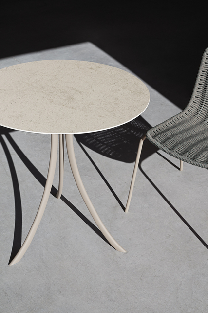 Structure made of oval stainless steel tube, finished with polyester powder. Tabletop options: HPL Trespa® 13 mm/0.51” thick, FENIX NTM® 12 mm/0.47” thick and Dekton® 8 mm/0.31” thick.