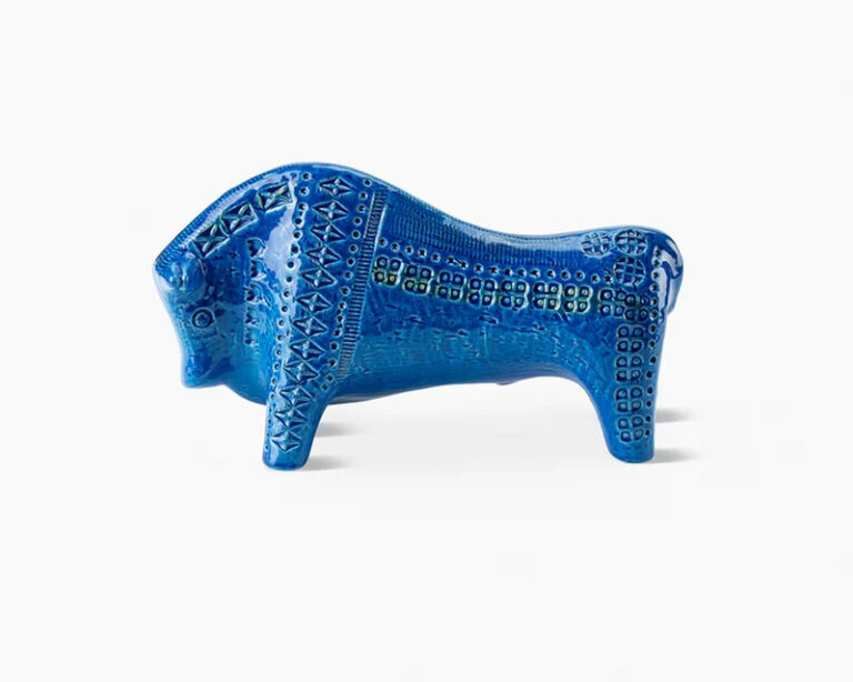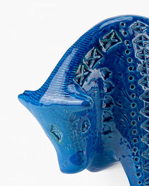 Casted mould in white fire-clay, Rimini Blu series. The décor is engraved by hand with different motifs stamp under a bright blue crystalline.