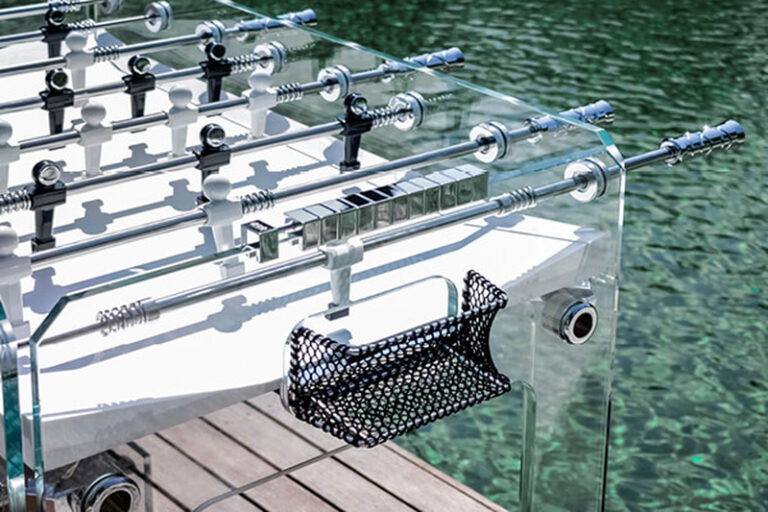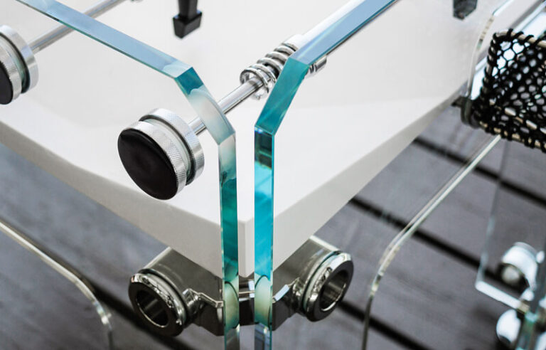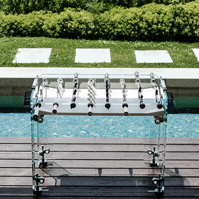 A vision in glass and Corian® entertains far and wide, for indoors and outdoors. Enjoy the game under the Tuscan, Tokyo. No matter what Mother Nature delivers, this table stands up, providing worry-free fun and a timeless beauty.