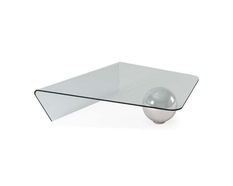 Globe is a design glass coffee table created by Giorgio Cattelan, with an incisive sculptured character that completes a modern design living room with style and elegance. Globe is made of curved glass with an irregularly shaped top with rounded corners. It has two supports on the ground: one in glass, forming one piece with the curved transparent top, the other consisting of a steel sphere, a globe as the name suggests. This glass coffee table for the living room is an item with an original yet refined style, thanks to the materials worked with skill.