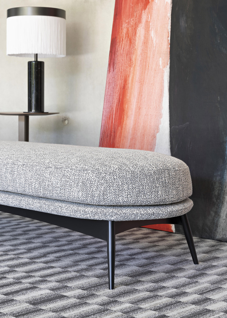 The seating collection “Oltremare” designed by Antonio Marras and produced in collaboration with Saba, stems from a far-away past and place, full of history, recollection, memories overflowing with suggestions and visions. And this is how Antonio Marras presented an object so dear to him that he defines a sacred-idol, that narrates of his land, of his sea, but mostly, of his story. We named it Oltremare, because all things have a soul and every soul has a name. Oltremare encloses within its inlets the classic and the modern. The curve is a line that can be tamed: it forms a wave, a fold, it creates a place but it also offers an escape route. In our utopian world we investigated the relationship between the curved line and the act of seating, asymmetric shapes that become backrests and sink into extremely comfortable seats pushing past the rectangular schemes so dear to the sober lines of designing sofas. The asymmetric curves that enclose it are the inspirations for the Oltremare armchair that completes the collection alongside a padded bench. A comfortable nest suspended on a slim varnished metal base, whose essential lines render, by contract, the armchair’s silhouette even more interesting. Oltremare is a seating system that, even though winks at the past, it communicates a strong contemporary soul and is suitable by nature to various interpretations. Fully removable covers.