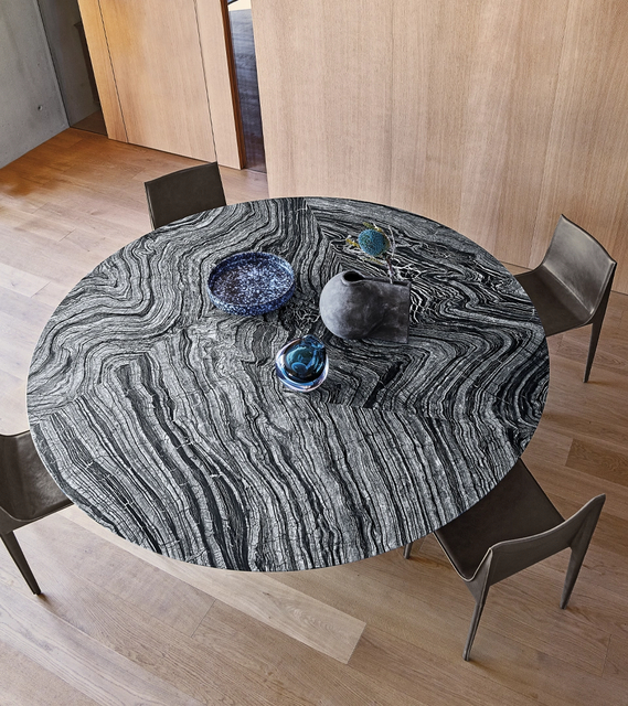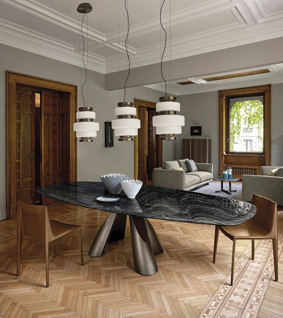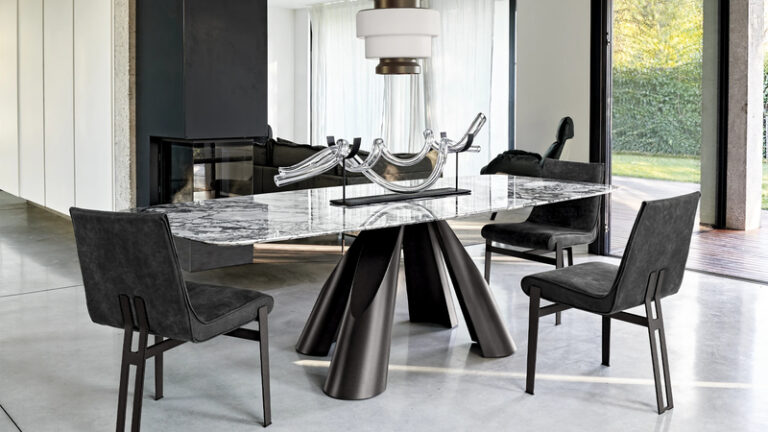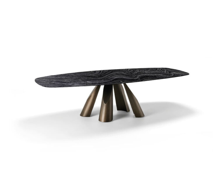 The legs are strong yet refined by an intricate design, one which calls to a different time. Their form is integral to the total approach of the table, they are, if you look closely, based on the form of a fireplace – moreover, they evoke elements of that meeting area where everyone would sit and talk. This is a table that invites you to social living in the grandest of forms. The top? It’s nobility done with a sense of belonging; here, everyone is welcome. It may be big, it may even have swooping lines and curvatures that evoke the idea of… big, but what it manages to do is shrink that space between you and your guests.